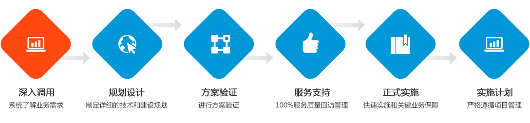 三盟科技會深入調(diào)研客戶需求,給客戶提供量身定制的解決方案和“一站式”技術(shù)服務,具體的服務內(nèi)容包括:需求調(diào)研、現(xiàn)狀分析、規(guī)劃設計、方案驗證、產(chǎn)品測試、實施部署、項目管理、服務質(zhì)量回訪,涵蓋了客戶的信息化使用全生命周期。