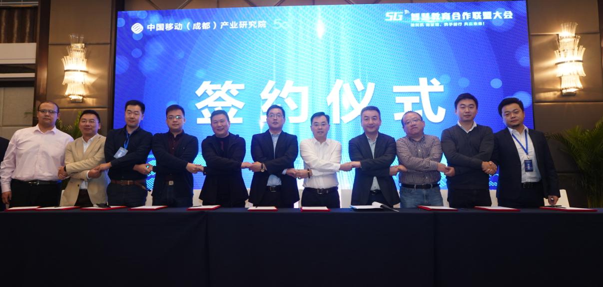 會議期間,三盟科技普教事業(yè)部總經(jīng)理董云成先生、廣州影新教育科技有限公司總經(jīng)理沈宇輝先生等教育企業(yè)行業(yè)代表,與中移(成都)信息通信科技有限公司簽署入駐協(xié)議,正式成為5G智慧教育合作聯(lián)盟(下稱:聯(lián)盟)成員。未來將發(fā)揮各自技術、資源優(yōu)勢,在成都乃至全國共同推進中小學“5G智慧教育示范點”建設!