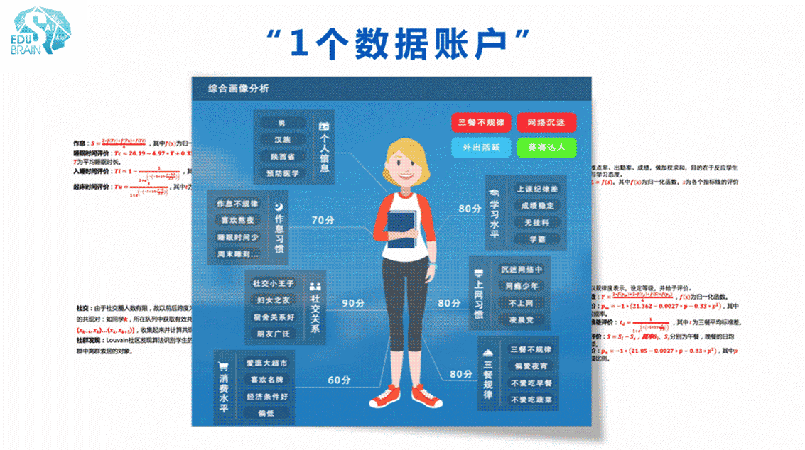 4大核心技術(shù)居中,為產(chǎn)品提供技術(shù)支撐,向上以創(chuàng)建一個(gè)數(shù)據(jù)賬戶為基礎(chǔ),向下則為用戶提供多種場景的解決方案。其中,“1”為1個(gè)數(shù)據(jù)賬戶,包括個(gè)人的綜合行為畫像;“4”為4種核心技術(shù),分別為:AIoD大數(shù)據(jù)、AIoT物聯(lián)網(wǎng)、AI人工智能和AIoF人臉識(shí)別4大技術(shù);“N”即是多個(gè)應(yīng)用場景。