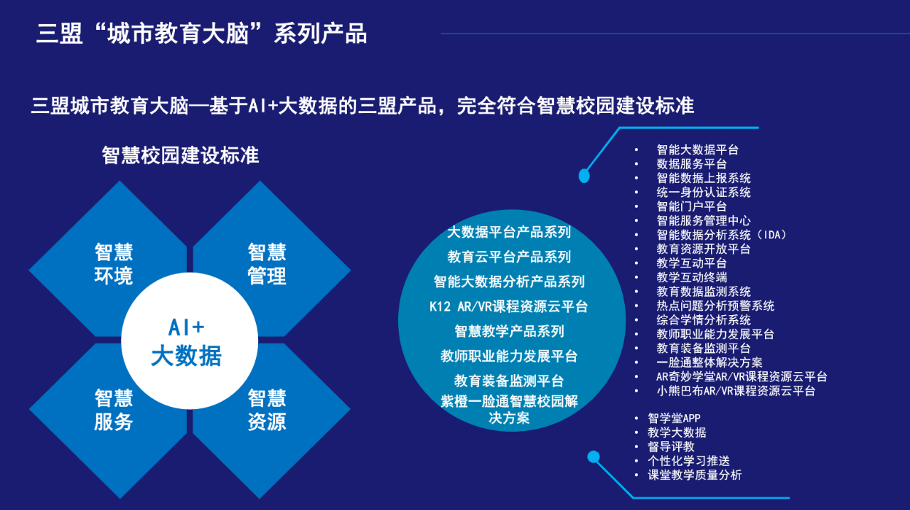 近年發(fā)布的《教育信息化2.0行動(dòng)計(jì)劃》、《中國(guó)教育現(xiàn)代化2035》及各地區(qū)智慧校園建設(shè)標(biāo)準(zhǔn)均明確提出,智慧校園建設(shè)需覆蓋全體學(xué)校,基礎(chǔ)環(huán)境完善是建設(shè)基礎(chǔ)保障,要建設(shè)智能化校園,統(tǒng)籌建設(shè)一體化智能化教學(xué)、管理與服務(wù)平臺(tái)。而《智慧校園總體框架》國(guó)標(biāo)正是規(guī)范了智慧校園建設(shè)的一把準(zhǔn)尺,城市教育大腦也正是基于這一大背景研發(fā)的智慧教育整體方案。