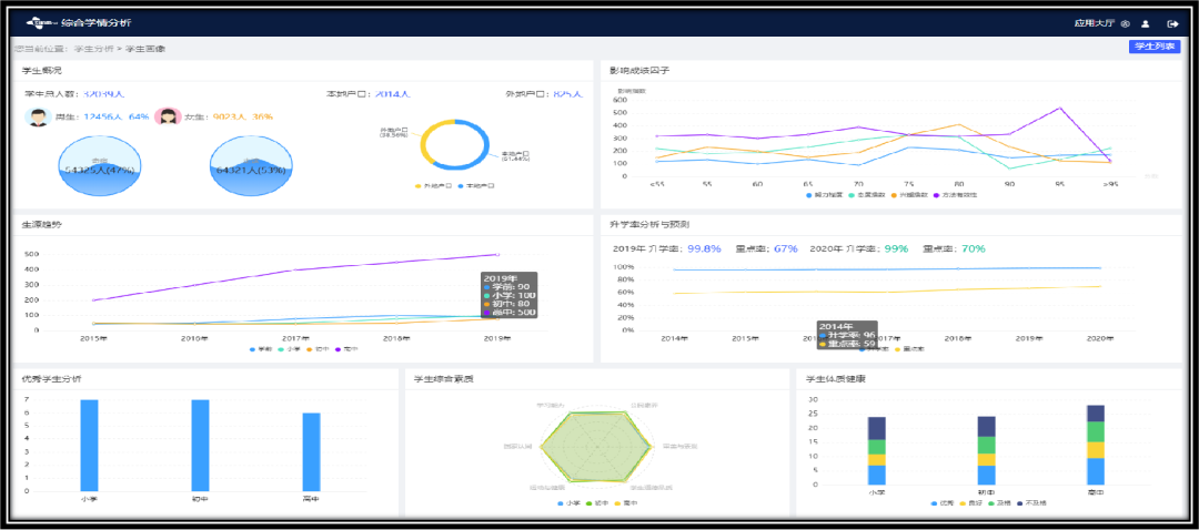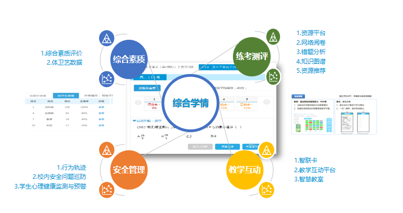 城市教育大腦擁有八大產品線十八大產品,全方位滿足普教信息化的需求。其中,智慧教學產品聚焦于智慧教育中的N個應用場景,解決學情難掌握、學業(yè)負擔重、教學管理缺乏數據支撐、家校溝通不便捷等切實痛點,推動教學資源均衡化、精準教育落地化、智慧教學個性化、綜合評價體系化、學生安全管理化。