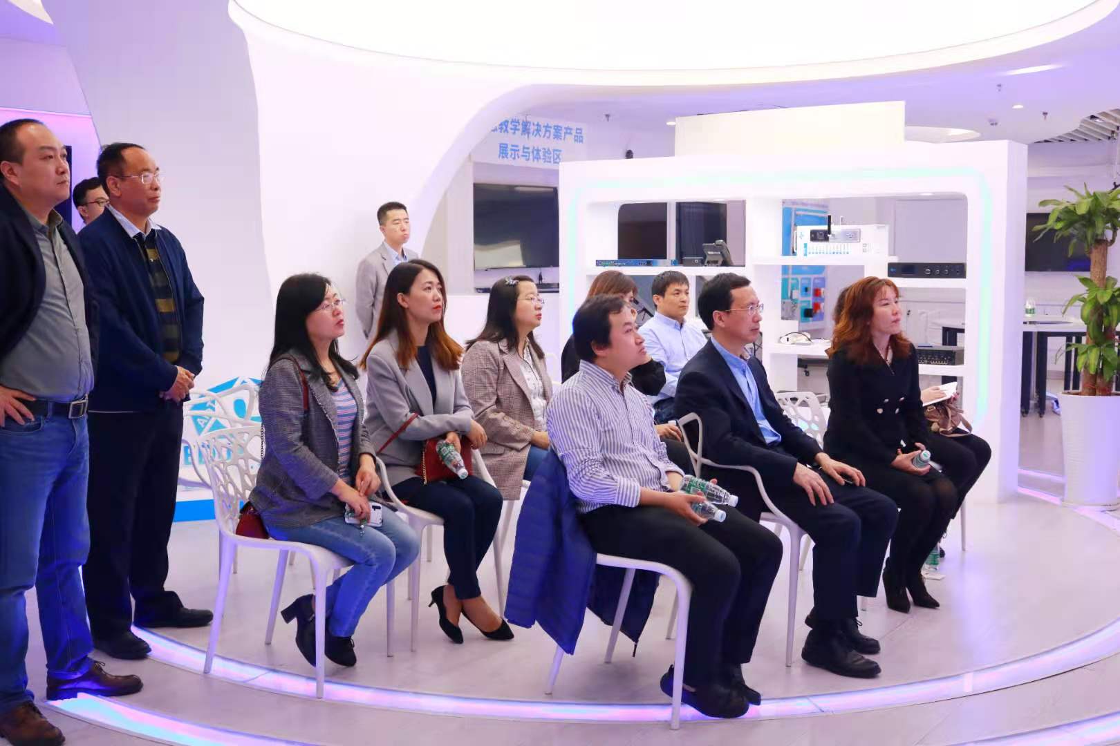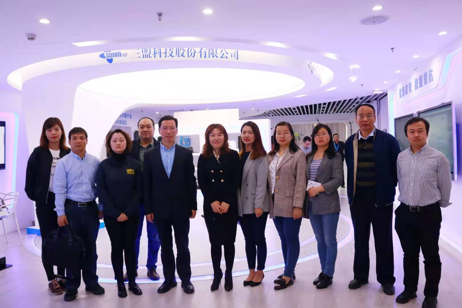 三盟科技董事長王喜英、人工智能應用研究院院長魏廣平博士、副總裁安志峰、總裁助理汪岳、陜西省總劉成等陪同參觀,王喜英向鄭慶華一行就三盟科技產(chǎn)品方案、技術實力、應用案例、團隊情況等方面作介紹。
