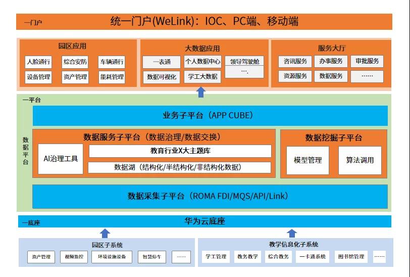一門戶,即是將應(yīng)用服務(wù)、數(shù)據(jù)資源等高度集成在統(tǒng)一的WeLink門戶中,為高校管理者、教師、學(xué)生等提供統(tǒng)一信息資源訪問(wèn)入口,為不同角色用戶提供個(gè)性化服務(wù)。