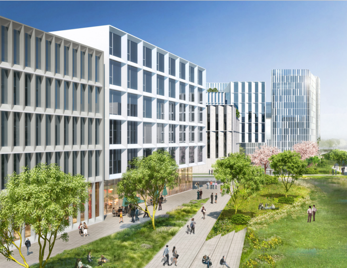 ↑左兩棟:三盟科技4804㎡獨棟研發(fā)辦公大樓