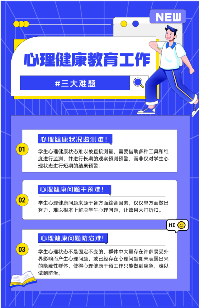 三盟科技基于多年來聚焦信息技術(shù)與教育場景的深度融合。通過深入洞察高校學(xué)生管理場景中的核心需求,推出高校大學(xué)生身心健康智能監(jiān)測系統(tǒng)(以下簡稱“系統(tǒng)”),助力高校解決學(xué)生心理健康教育工作的3大難題。
