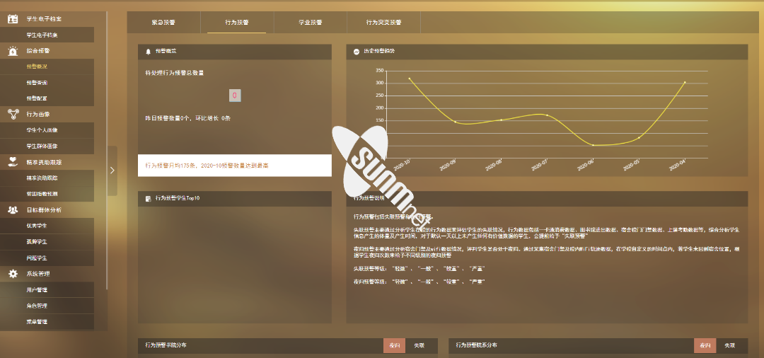 為保障學(xué)生人身安全,系統(tǒng)通過學(xué)生行為軌跡分析,借助異常發(fā)現(xiàn)算法,可以對學(xué)生的失聯(lián)、夜歸、逃課等異常行為進行預(yù)警。平臺自動將預(yù)警信息報送給有關(guān)部門,讓管理人員可以提前采取應(yīng)對措施,避免危險事件的發(fā)生。