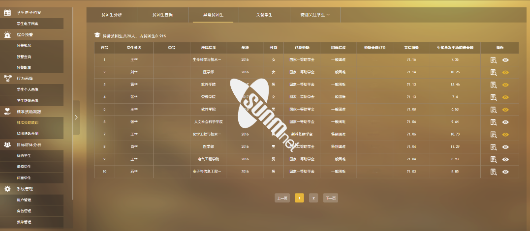 教育幫扶同樣是學(xué)生管理工作中的一項要務(wù)。如何讓國家資助金落實到真正需要幫助的家庭經(jīng)濟困難學(xué)生?同時,把學(xué)生尊嚴(yán)放在心上,量身定制個性化資助方案,該系統(tǒng)帶來了更科學(xué)的甄別手段。