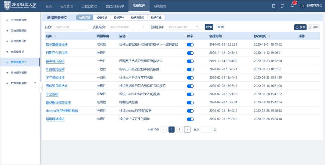 數(shù)據(jù)質(zhì)量的好壞關(guān)乎數(shù)據(jù)分析結(jié)果的準(zhǔn)確性,從而影響決策。為保障數(shù)據(jù)質(zhì)量,廣財(cái)還建設(shè)了數(shù)據(jù)質(zhì)量管理體系。通過監(jiān)測數(shù)據(jù)質(zhì)量、處理異常數(shù)據(jù),再將數(shù)據(jù)質(zhì)量報(bào)告反饋給相應(yīng)的業(yè)務(wù)部門,形成數(shù)據(jù)質(zhì)量改善的閉環(huán),推動數(shù)據(jù)質(zhì)量不斷提升,支撐各相關(guān)業(yè)務(wù)的高速運(yùn)轉(zhuǎn)。