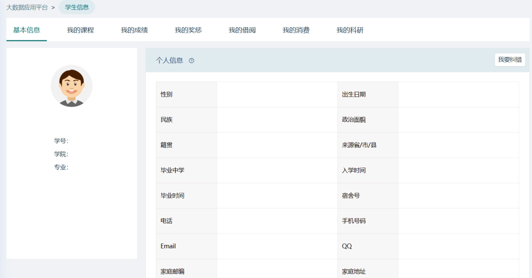 “學(xué)生一張表”主要通過數(shù)據(jù)呈現(xiàn)全校學(xué)生的在校生活狀態(tài)及學(xué)習(xí)成果,包含學(xué)生的基本信息、課程、成績、獎懲、消費(fèi)等方面的信息,便于針對性進(jìn)行學(xué)生學(xué)習(xí)及成長指導(dǎo)。