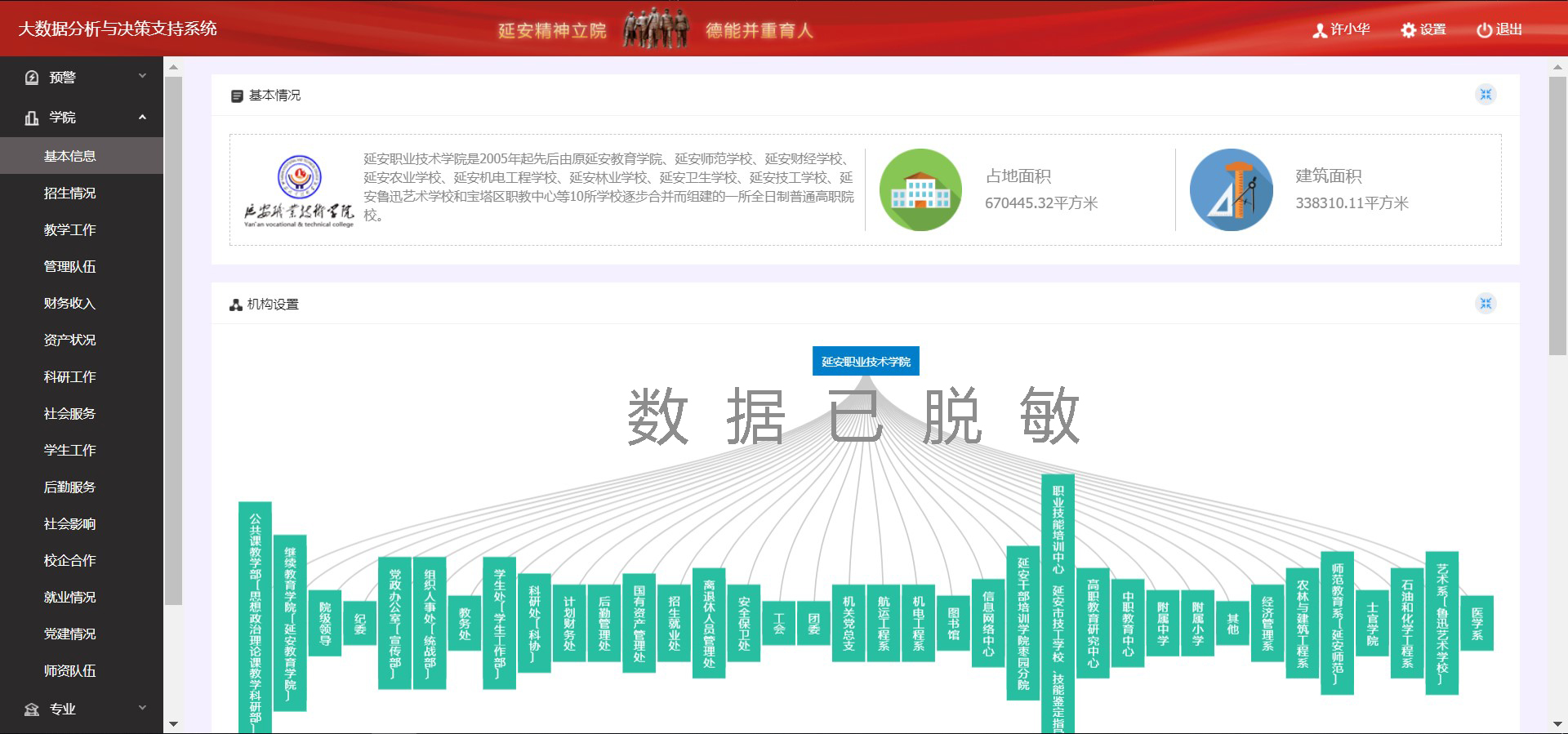 通過(guò)基本校情、運(yùn)行成果、預(yù)警情況展示