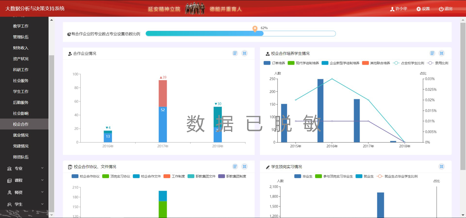 面對(duì)日益嚴(yán)峻的就業(yè)形勢(shì),高?,F(xiàn)代職業(yè)化教育改革成為必然。而大數(shù)據(jù)作為這個(gè)新時(shí)代的技術(shù)代表,已然成為驅(qū)動(dòng)高校職業(yè)化教育改革的新動(dòng)力。如何應(yīng)對(duì)大數(shù)據(jù)背景下職業(yè)化教育改革的各項(xiàng)挑戰(zhàn),這就要求高校必須樹(shù)立大數(shù)據(jù)思維理念,建設(shè)數(shù)據(jù)共享平臺(tái),建立專(zhuān)業(yè)數(shù)據(jù)管理隊(duì)伍。三盟科技用大數(shù)據(jù),與延安職業(yè)技術(shù)學(xué)院合作建設(shè)大數(shù)據(jù)分析平臺(tái),通過(guò)大數(shù)據(jù)分析與決策系統(tǒng)、內(nèi)部質(zhì)量保證監(jiān)測(cè)系統(tǒng)、領(lǐng)導(dǎo)駕駛艙等,打通業(yè)務(wù)系統(tǒng),消除數(shù)據(jù)孤島,推進(jìn)診改及智慧校園建設(shè)工作。